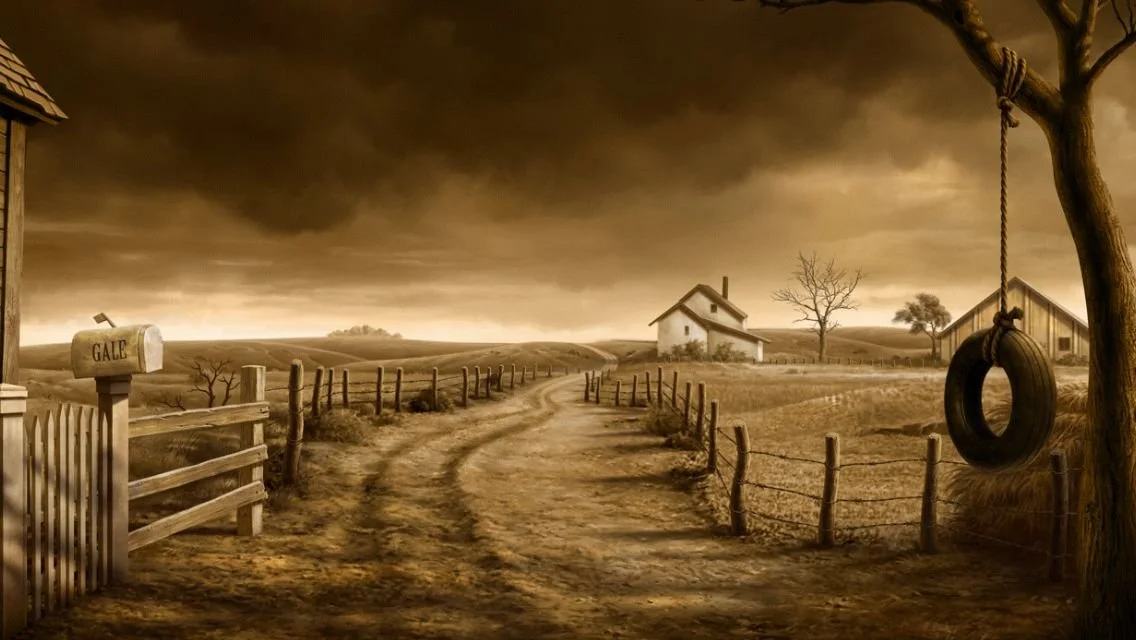 HOLLYWOOD, 1939 — The set is black and white but mostly gray. A young girl steps into the barnyard. Her Auntie Em tells her to “find some place where you can stay out of trouble.”