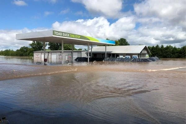 Toad Suck’s luck ran out in 2019 when the Arkansas River flooded the entire region. Toad Suck One Stop has recovered but nearby Toad Suck Park remains closed. Still, this one-stop town with the nutty name rolls on.