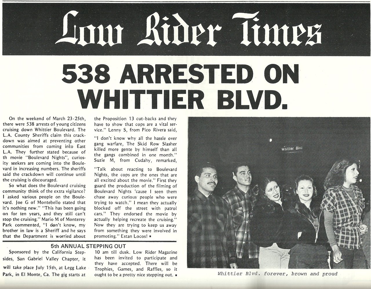 Throughout the 1980s, as California communities banned low riding, the culture spread. Rap and hip-hop eulogized Low Riders. Cops cracked down.