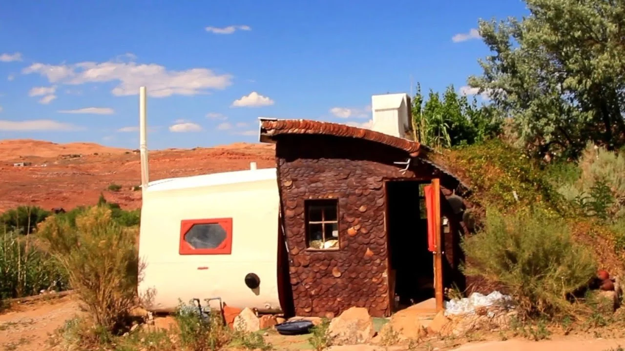 MOAB, UTAH — SUMMER 1956 — The tourist from Cleveland is talking with the park ranger who lives in that tiny trailer up on the ridge.