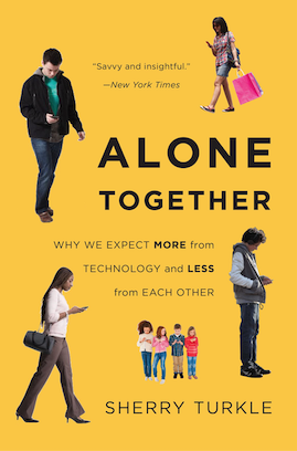 Turkle’s breakthrough came in her 2011 book Alone Together. “I feel witness for a third time to a turning point in our expectations of technology and ourselves,” she wrote. “We expect more from technology and less from each other.”